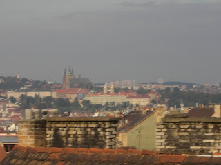 Our extremely early arrival in Prague led to some loitering outside our hostel before the reception was open - but once we got inside we were greeted with free internet (8 fast brand new computers), a huge breakfast for about $6, and showers! The hostel was really nice - lots of way too friendly people once again, but a lot bigger than the one in Budapest. There were 6 levels (of course we were on the top floor - but there was an elevator) and our room was amazing! Apparently they don't usually rent that out to people but they "knew we were couples" (what??) and so there were two mattresses in the main part of our room and then a big double bed with two twin mattresses in a smaller bedroom off of that. Sami and I took the bedroom, obviously. We had a kitchen, too, but we didn't really use it. The best part was our roof deck! A ladder from our room went up onto the roof of the hostel -- a huge area just for us! The view was beautiful and you could see everything from up there.