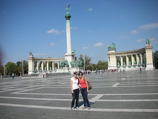 Our last day we went to the House of Terror Museum where we learned about the Nazi and Communist rules of Hungary... definitely not something you remember from history class in particular. It was a lot of reading but really interesting. We walked up to Hero's Square and the City Park and then went to the public baths! They were beautiful! You can see the outside area below -- it was huge. There were three huge pools with fountains and jets and currents, and then inside the building there was pool upon pool upon hottub upon sauna.... it really was endless. Each had a different temperature and a different kind of light in the sauna. It was packed and we didn't have that much time, unfortunately, but it was so nice to be outside and go swimming! Michael's waterproof camera came in handy here.